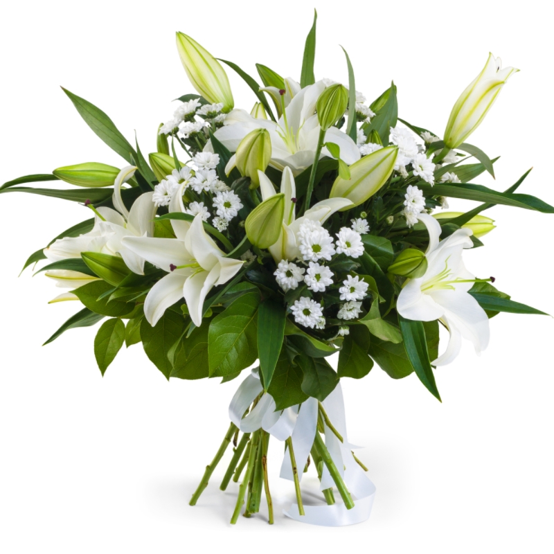 Букет из белых лилий и хризантем
