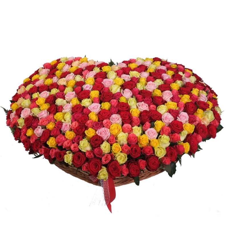 MIX из роз в виде сердца в корзине